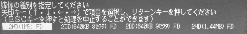 フォーマットコマンドから「1.44MB」の表記が消え、エミュレータ側で1.44MBのディスクイメージをマウントしても